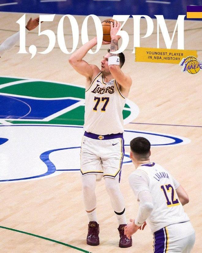第一节比赛,湖人在东契奇带领下迅速进入状态,尤其是东契奇首节命中两记三分。凭借这两个三分球,他以 26岁331天 的年龄,超越塔图姆(26岁362天),成为NBA历史上最年轻达成常规赛1500记三分 的球员。首节比赛湖人全队手感更热,詹姆斯、八村塁、范德比尔特等人内外开花,首节结束以37比28领先独行侠。
