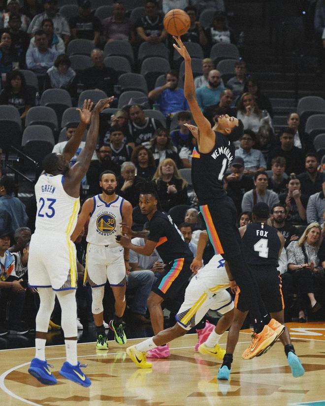 进攻端,即便文班投不进球,对方主帅也不敢让防守者离开他半步。