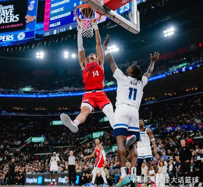 第一节比赛迪文琴佐命中三分,马瑟林投篮得分后麦丹扣篮得分,随后快船打出一波7-2,迪文琴佐命中三分后马瑟林突破得分,爱德华兹扣篮得分后兰德尔连得4分,麦丹扣篮得分后马瑟林罚球得分止血,戈贝尔罚球2中1后爱德华兹打板得分,快船打出一波8-2后道苏姆命中三分,接下来两队进攻对轰,第一节比赛结束森林狼领先2分。第二节比赛麦丹扣篮得分,米勒上篮得分后道苏姆抛投命中,米勒突破得分后两队频频打铁,后面戈贝尔上篮得分,里德罚球得分后琼斯也罚球得分,迪文琴佐抢断反击扣篮得分后邓恩罚球2中1,后续两队进攻停滞,迪文琴佐罚球得分后邓恩补篮得分,之后迪文琴佐、爱德华兹得分,半场比赛结束森林狼领先6分。