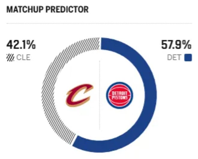 赛前,美媒ESPN对本场比赛进行了预测,活塞胜率为57.9% ,骑士胜率则为42.1% ,略占劣势。