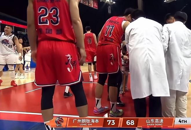 这场比赛前广州主帅郭士强(现役中国男篮主帅)就在场边观战,他看到爱徒郭艾伦遭遇大伤,郭指导的脸上明显出现了紧张、慌乱。